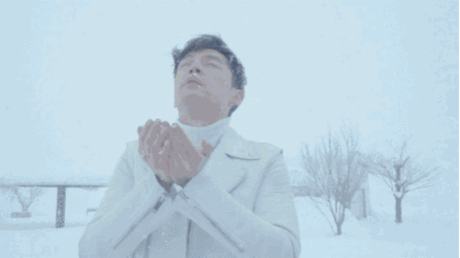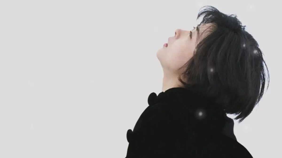 女子躺在无垠雪地中,抬头仰望,回忆当年情景。