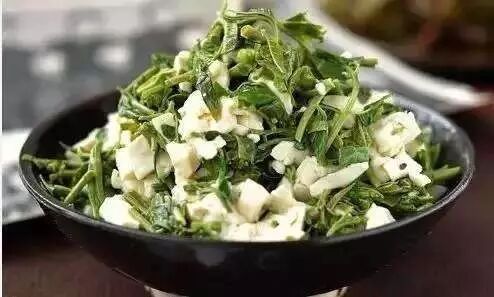 汪曾祺最爱的就是香椿拌豆腐,白花花的豆腐点缀着香椿的清香,怪不得让汪曾祺念念不忘赞叹道:“一簪入口,三春不忘”。