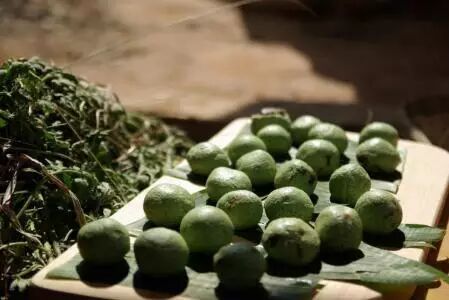 清明时节的的艾蒿足有一寸多高嫩绿如洗一片娇嫩,气味也最为清香淡雅,在《本草纲目》记载:"艾叶味苦,性微温,灸百病‘’。艾蒿乃医家之草,民间也常用艾蒿来制作食物,江南一带的艾蒿尤其清香制作出来的青团也更加纯正而自然,但是艾蒿天生自带苦涩之味若直接榨汁制作青团难免口感不好,深谙美食之道的中国人仅用碱水便将艾蒿中的苦涩之味去除。即去除了艾蒿的苦涩之味又保留了艾蒿的清香,真是一件一举两得的做法。