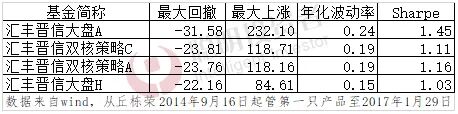 丘栋荣管理期间,汇丰晋信大盘A年化波动率是24%;汇丰双核的年化波动率是19%,而沪深300指数大概是28.4%