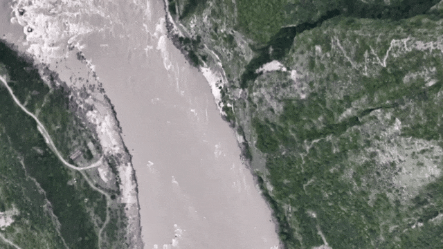 墨脱县城位于雅鲁藏布大峡谷中的一处狭隘平地,而多数村寨是修在山坡上(张雷 摄)2025年7月19日,雅鲁藏布江下游水电工程在西藏林芝正式宣布开工。这是中国近年来最大的基础设施建设项目。它将采取截弯取直、隧洞引水方式进行。这项工程不仅是一项国家战略,更是一场对自然地理的深刻利用。工程所处的雅鲁藏布江大峡谷拐弯地段,是印度洋板块与欧亚板块碰撞的缝合带,山高谷深,而墨脱就恰好位于其咽喉位置。在如今普通探访者能抵达的最远处背崩乡西让村,我们看到,浩荡的雅鲁藏布江在视野范围内连续下行,拐出了几道大弯。两岸岩壁陡峭,峡谷顿时收紧,如同一把天然锁扣钳住江水,发出虎啸般的怒吼。
