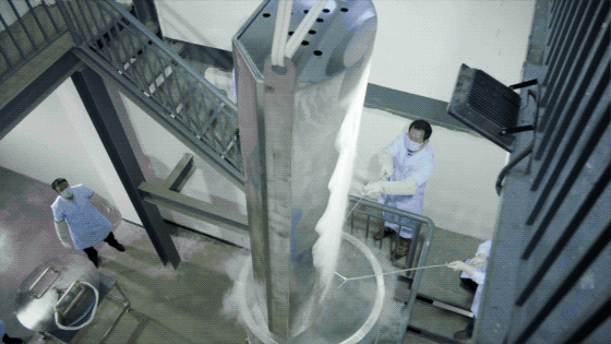 病人经过60多个小时的降温之后,会被转移到巨大的液氮罐中进行长期保存。