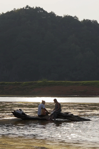 夏天,八喜和小佛常常去玩水,有时八喜会带上乐器