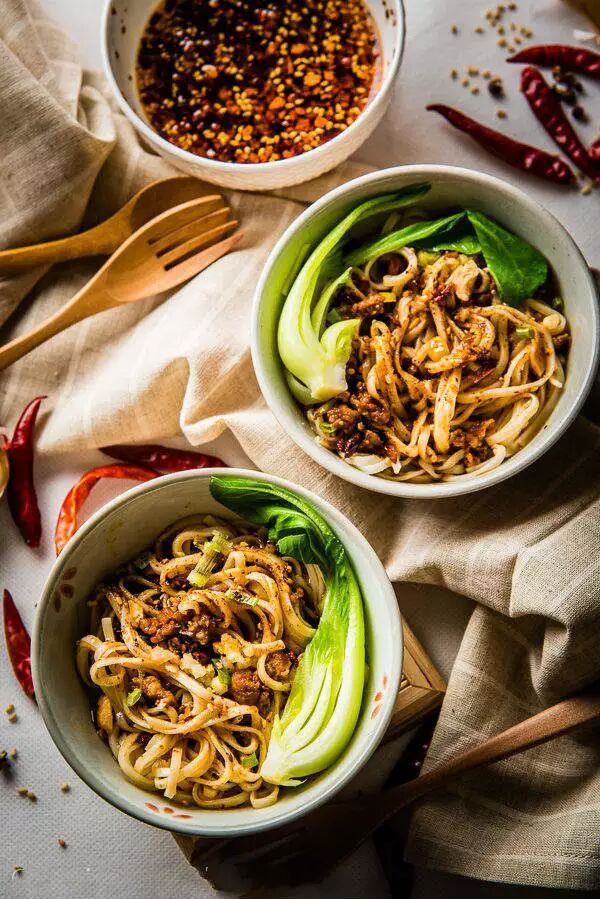 梦厂说过,担担面最像我眼中的成都:一边泼辣着——川味浓烈却不单调,繁复多样的调料一一被面摊主的巧手精准布下,咸甜酸辣鲜一样不缺,正是川菜典型的复合之味;一边又精致着——面条爽滑,肉臊酥香,汤汁酸辣,细碎的芽菜、花生和芝麻点出跳跃的香味,如此丰富的口感皆融于小小一碗,妙就一个字啊~