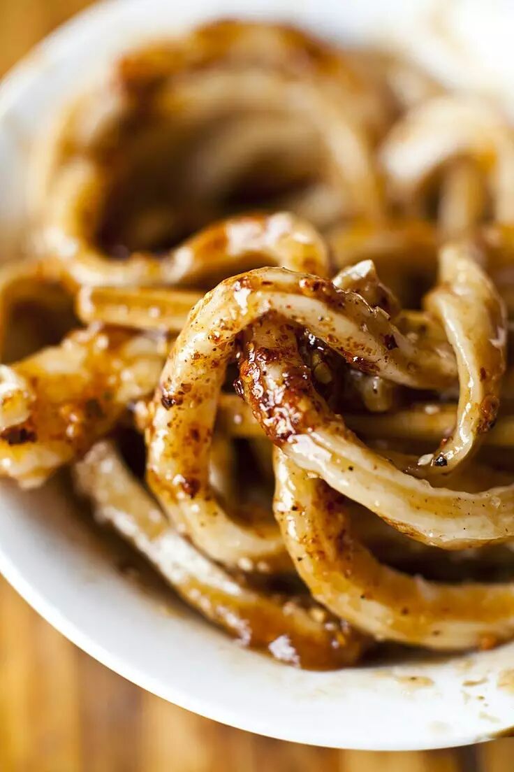 对于这种只有酱没有菜的拌面来说,大多数时候梦厂心里是拒绝的,甜水面算是少数的例外,因为酱汁好~特~别~啊!它名为”甜水“,是因为用上了一种以八角、桂皮、甘草、小茴香、生姜、红糖等佐料重新调味熬煮过的甜红酱油。这种复杂而醇美的甜味,搭配上川味之辣,多一分太重,少一味嫌寡,真是回味无穷。 更妙的是,面条必须是筷子那么粗的劲道手擀面,仿佛只有这样的“汉子”身材,才挂得住“川妹子”一般甜美又呛辣的酱汁。