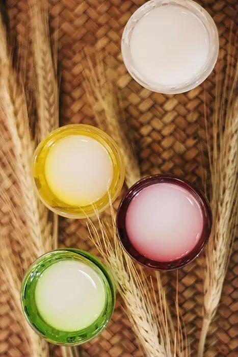 老板娘风风火火地过来,只丢下一句:“你们先吃,吃完再聊。”然后就吩咐一位手脚麻利的黑衣小哥奉上一小杯素白浓稠的酒——据说这是德宏土司家宴的习俗,餐前得喝四季酒。梦厂小心沾了沾唇,只觉清甜甘香,毫无涩感,不觉一杯就下了肚。黑衣小哥看大家都爱喝,才多介绍说:酒称“四季”,是因为口味随四季变幻,玫瑰桂花不一而足,与深秋相搭配的这一杯,取米香原味。