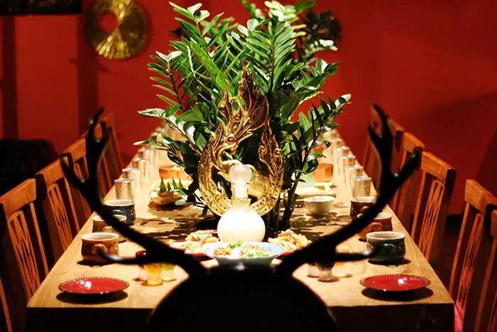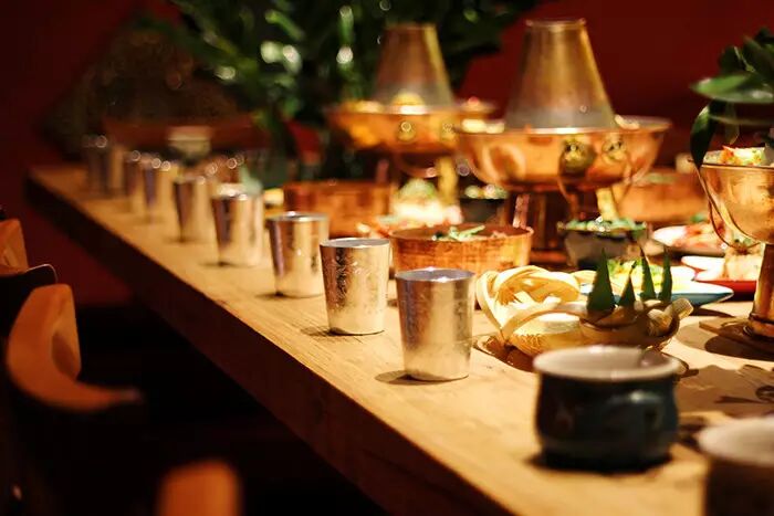 话说在古时候,作为德宏州的行政长官,“土司”一职通常由中原委任给当地的傣族名门。这支大家族一路繁衍发展数百年,自有一套礼仪文化,长桌宴是最能体现其中饮食文化的一环。在礼仪上,长桌宴融合了中原绵延千年的尊贵习俗,讲究正式的仪式感,指定锡器和银器为席间餐具;在菜色上,则是以充满野味山珍的少数民族风味菜为主角。梦厂吃到的铜锅菜就是土司家族最具特色的秘传大菜,非贵宾不得享用,原本在寻常百姓家是绝对看不到的,配方技法只掌握在专门负责料理家宴的土司家女人们手里。