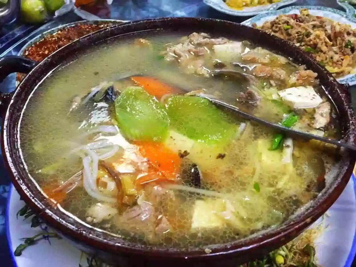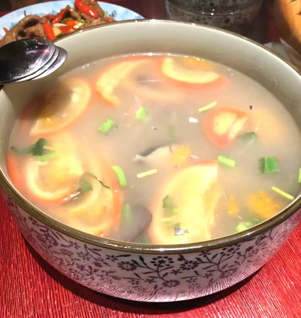 和大理的酸木瓜鱼锅差不多,还加了鲜番茄 不同的是似有豆豉香,平衡了过重的酸味,整体更为清鲜 别看貌不惊人,油焖鸡吃完配碗这个汤,无敌解腻