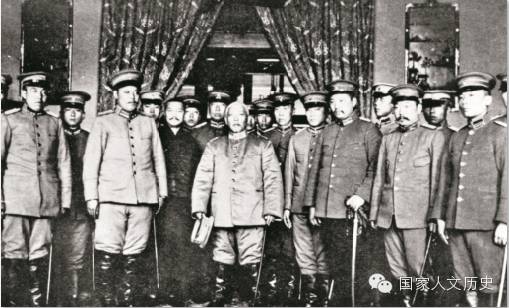 1912年3月10日,袁世凯在北京原清政府外务部公署宣誓就任临时大总统后,与北洋将领合影