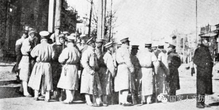 1912年1月,袁世凯退朝后遭到投弹暗杀同盟会京津分会投弹暗杀,当场炸死、炸伤随从数人,袁世凯侥幸躲避。图为暗杀后,禁卫军出防