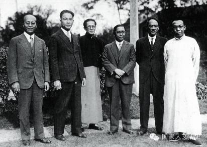 1931年,反蒋另立的广州国民政府部分委员,左起:伍朝枢、汪精卫、李文范、孙科、陈友仁、邹鲁