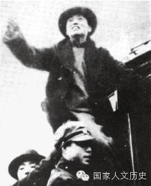 1935年12月16日,清华大学学生黄敬在天桥的一辆电车上向群众演讲,在下面架着他的是东北大学宋黎