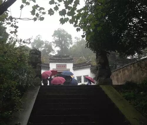现在看到的“郑广文祠”扩建于2004年,占地1500平方米,包括大门、正厅、碑墙、山门等部分,坐落于临海市区北固山南麓,背倚台州府古城墙,正厅后连著名的清代八仙岩摩崖石刻群。自然风景与人文胜迹融为一体,壮丽秀美。我们去参观那天,正下着雨,参谒者仍然络绎不绝。