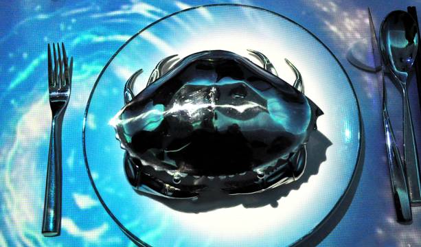 波光粼粼的湖面和坚硬的蟹壳形成强烈的对比: