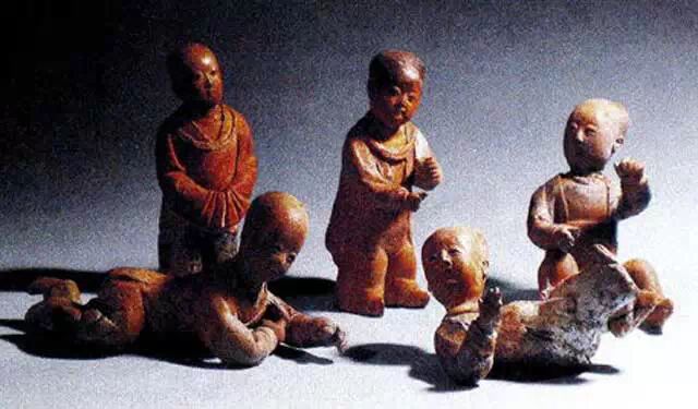 (宋朝的摔跤小童陶俑)