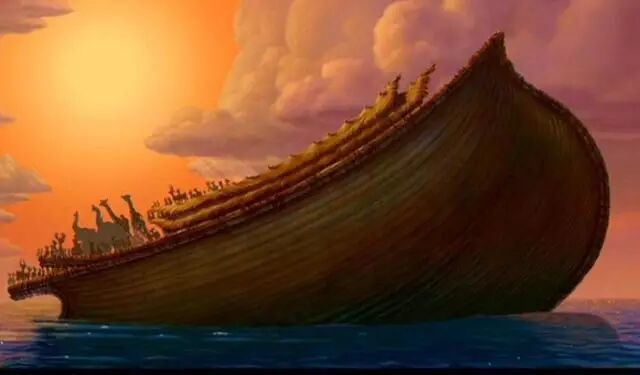 但耶和华又觉得诺亚是个义人,就决定通知诺亚,可以带上妻子和三个儿子以及儿媳,造一条大船——这条大船就叫“方舟”——带上世界上每样动物各一对,躲到船上。