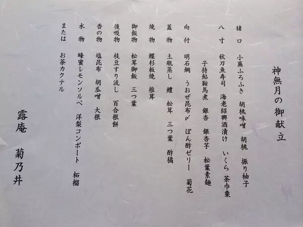 于是我俩要了份日文菜单,瞬间茅塞顿开-菜单题目是“神無月の御献立”,意思就是 “神都不在跑去出云开会的月份”,这张详细的日文菜单,省去了每次拼命问食材记笔记查字典的工夫:
