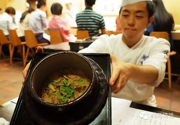 第四道蓋物是海鳗的土瓶蒸,附带一个小碗,吃的时候先把汤倒出来,捏上酸橘汁喝,最后吃瓶子里的东西。