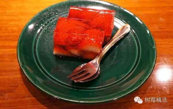 他家的料理感觉就是没有一道不好吃的,印象深刻的是最后的甜品草莓果冻,绿色碟子盛着透明jelly,里边嵌着两颗草莓,那股香甜已经深深渗入啫喱中,想到之前在锦市场买到过一次非常香甜的奈良草莓,就有类似的味道。
