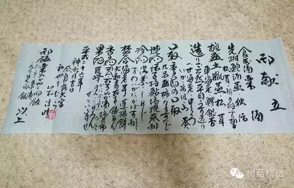 在问主厨要日文菜单的时候,一时没有,人家直接拿出毛笔洋洋洒洒当场一气呵成,完了最炫酷的是拿菜刀把纸裁开: