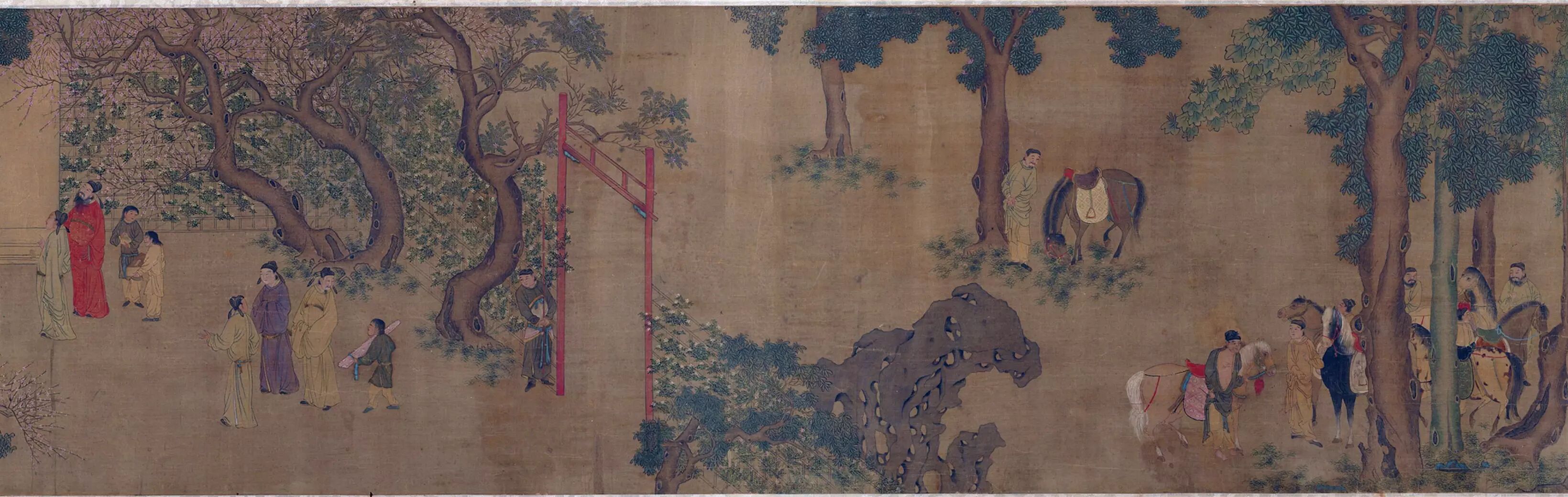 以北宋相州郡圃为题材的钱选《昼锦堂图卷》局部