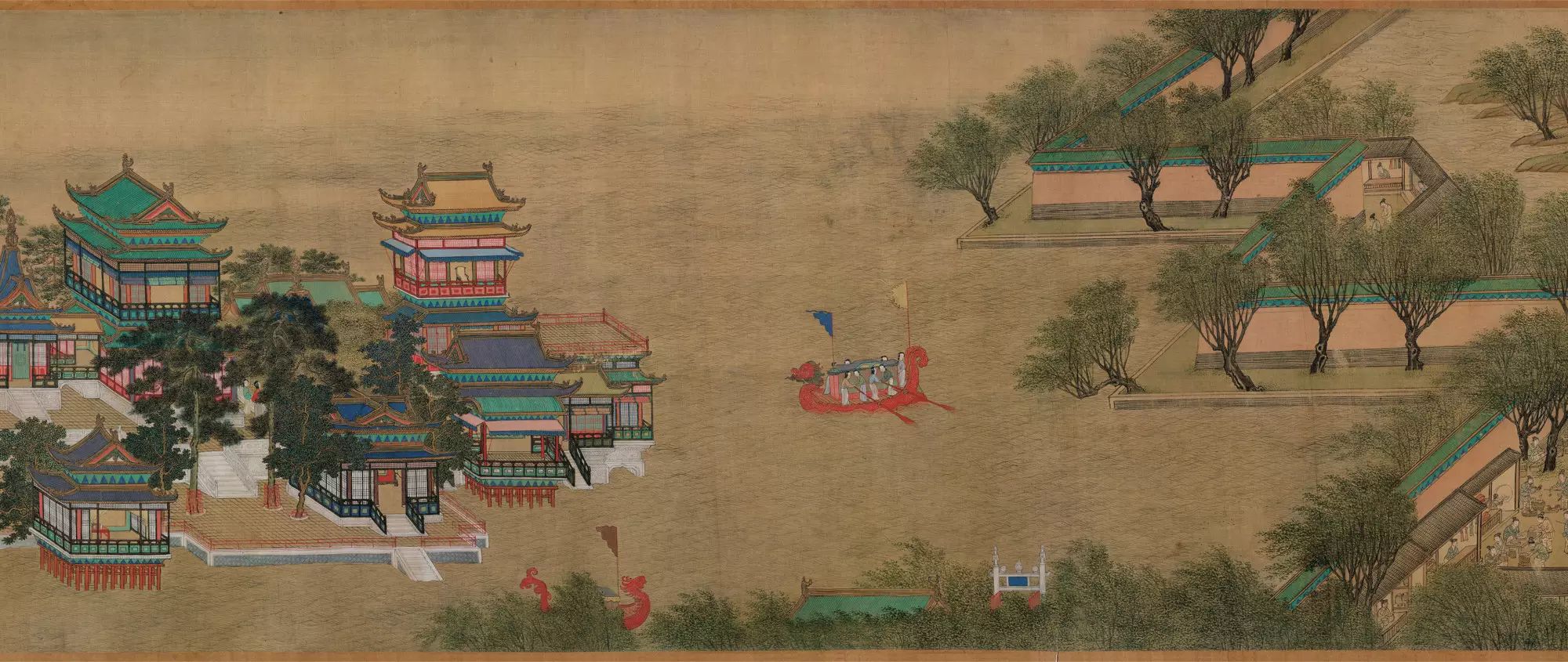 以北宋相州郡圃为题材的赵孟頫《昼锦堂图卷》局部