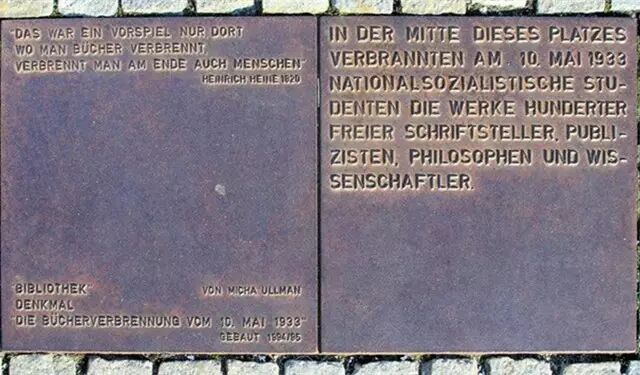 当然,古往今来有过与人类文明为敌的焚书“壮举”的民族恐怕并不仅只有日尔曼民族,因为专制者也大都意识到“书本”对自己的威胁力量,对其恐惧万分,要用国家暴力来“消灭之”。但有勇气修建“纪念碑”记述自己这种烧书罪过的民族,现在还只有日尔曼民族。这不愧是一个产生过歌德、席勒、贝多芬、康德、黑格尔、马克思、韦伯……这些文化思想巨人的民族所应有的气概。它知道,只有记住曾经“烧书”,才能避免再次“烧书”;忘记曾经“烧书”,很可能还会“烧书”。