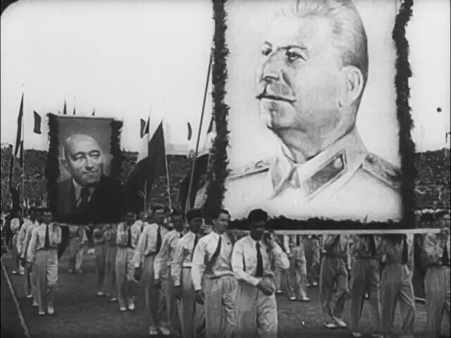 50年代初东德青年扛着斯大林像游行,东德的青年官方组织名为“自由德国青年团”,即苏联的共青团。