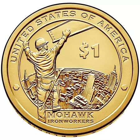 2015年图案是莫霍克族印第安钢铁工人,他们参与建造了纽约摩天大楼。莫霍克钢铁工人的形象也彻底改变了传统印第安人那种头插羽毛,手持战斧的刻板印象。这证明并没有一成不变的土著人,所有人都可以自己的方式融入现代社会。