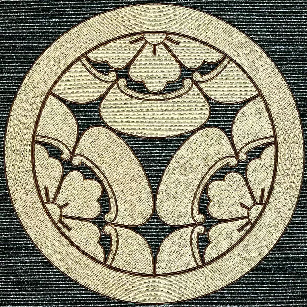 这是江户时代流传下来的一首儿歌,从这首俗谣里面透露了三个信息:一是木瓜纹;二是地名;三是姓氏。而且从中还可以看出它们的因果关系,那就是知道了木瓜纹,就知道了对方的出身地以及姓氏等。那么,这种“木瓜纹”是什么呢?它就是以“木瓜”的图案作为一个家族的“家纹”,也即我们所说的家徽。