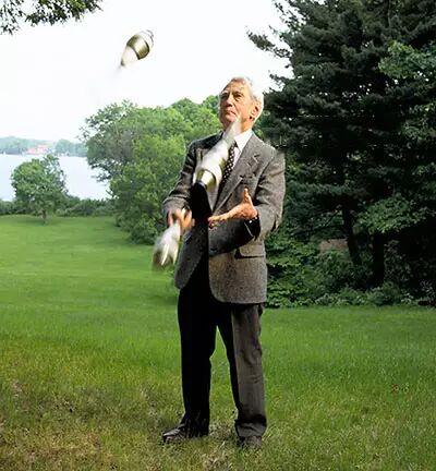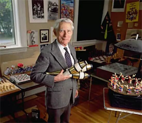 ▲ 到晚年仍爱好抛接杂耍棒的香农