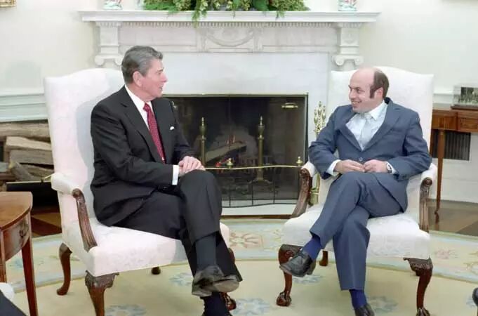 ▲ 1986年12月,沙兰斯基与美国总统里根会面