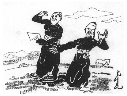 蒙古报纸上的画,“不能读书的人就像看不清路的瞎子”。