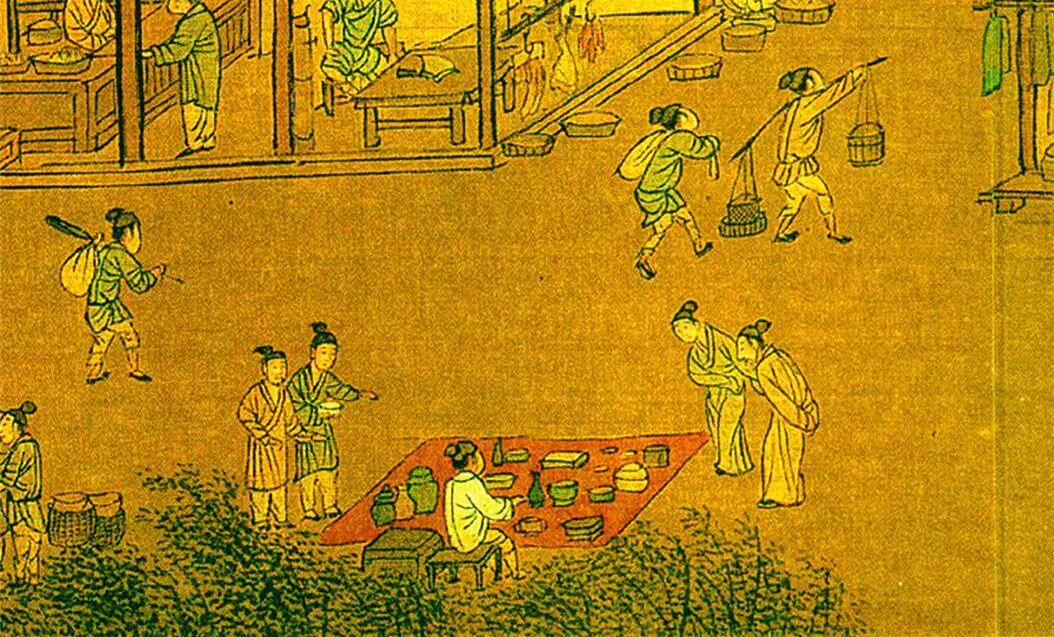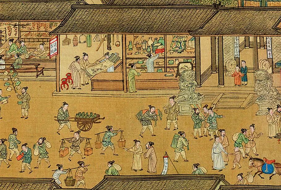 虽然仇英版本《清明上河图》反映的是中晚明的城市生活,不过,证之文献,我们可以确知,宋代的城市亦出现了类似的古玩商店与摊子。《东京梦华录》载,开封东十字大街的茶坊,“每五更点灯博易,买卖衣物、图画、花环、领抹之类,至晓即散,谓之鬼市子”;潘楼附近的集市,“每日自五更市合,买卖衣物、书画、珍玩、犀玉”;大相国寺也有古玩市场:“殿后资圣门前,皆书籍、玩好、图画,及诸路罢任官员土物、香药之类”。《都城纪胜》也记载,杭州“自大内和宁门外,新路南北,早间珠玉、珍异及花果、时新海鲜、野味、奇器,天下所无者,悉集于此”。这里的图画、珍玩、玩好、珍异、奇器,都是古董。