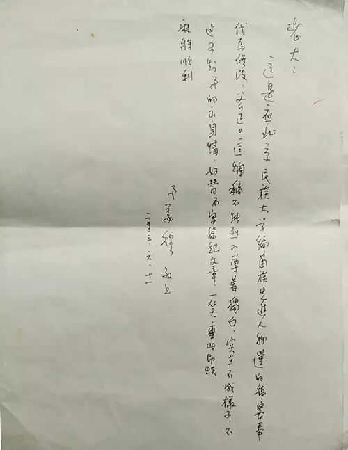 老大:这是应北京民族大学编苗族先进人物选的稿,寄奉代为修改、斧正。这烂稿不能烈(列)入尊著独白,实在不成样子。不过可知弟的出身情(况),好替弟写篇纪(实)文章,一笑。