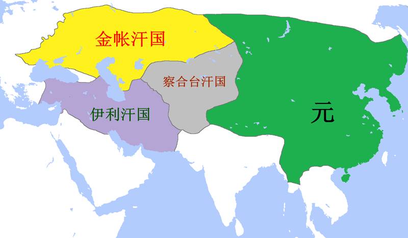 ▲ 大蒙古帝国分裂以及窝阔台汗国灭亡后的态势图