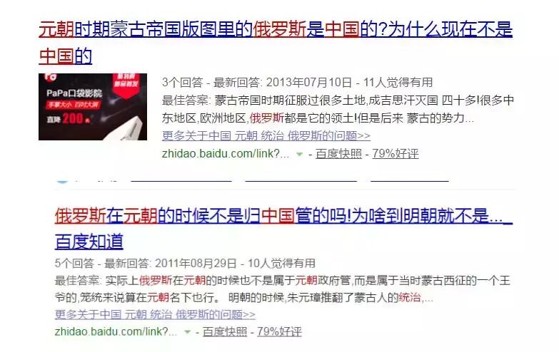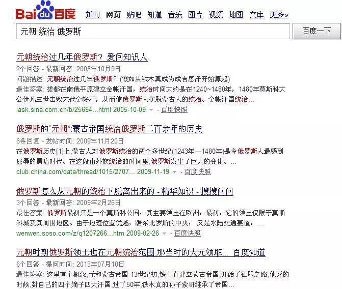 用百度搜索,“中国(元朝)统治过俄罗斯”还真是仅次于“八国联军火烧圆明园”的一种广泛认知,甚至有些版本是说统治过东欧。