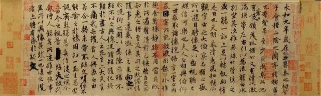 王羲之《兰亭序》,原稿已失,故宫博物院收藏的,是唐代虞世南、褚遂良的临本和冯承素的摹本,台北故宫博物院亦藏有褚遂良临绢本和定武本。