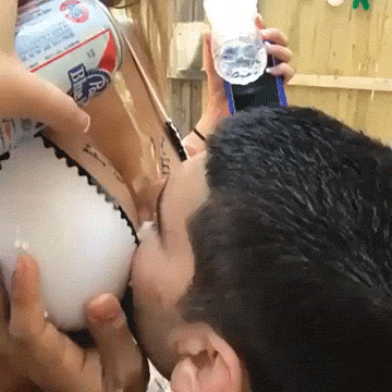 基于传统玩法,再稍微发挥一下主观能动精神,小伙帮姑娘给乳沟冲凉降温,姑娘也为小伙提供一尊传说中的酒杯: