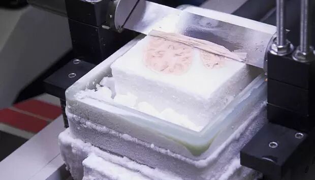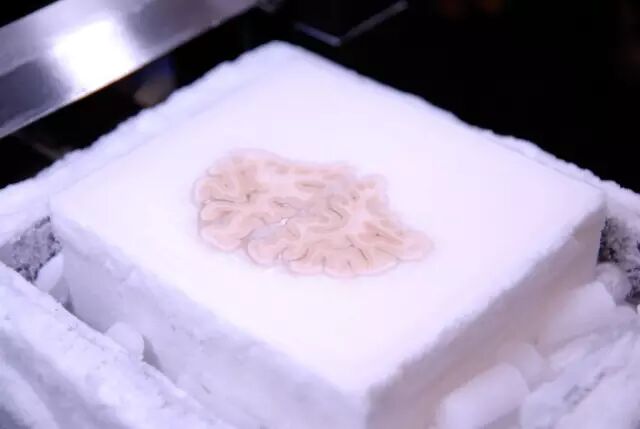 ▲ 被安置在冰盒内的莫莱森大脑,被切割为2401片70微米厚的薄皮