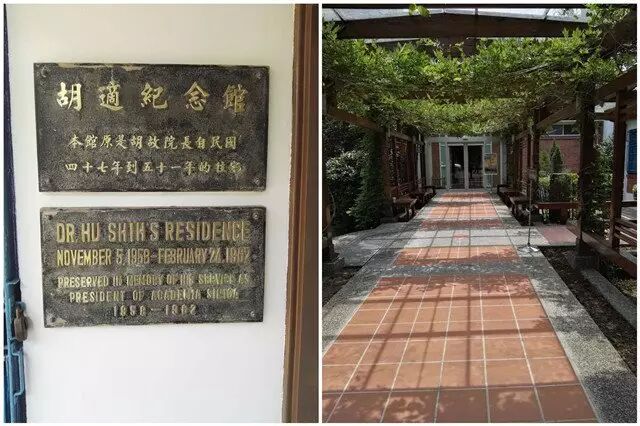 一处在台北市南港区研究院路2段,是“胡适纪念馆”的一部分。它是胡适1957年4月返回台湾定居,就任“中央研究院院长”期间的住所,依胡适病逝前的原样保存着。纪念馆的另两部分:一是美国友人捐建的胡适文物史料陈列室;一是当地士绅捐地两公顷建的胡适墓园,位于与研究院一条马路之隔的山坡上,与故居遥遥相望。墓园(公园)庄严肃穆而恬静平和,矗立着胡适塑像,主墓区用大理石镌刻的墓志铭,由比胡适小两岁、人称“百科全书式的学者”毛子水撰文,金石家王壮为书写。碑文评论胡适是“为学术和文化的进步,为思想和言论的自由,为民族的尊荣,为人类的幸福而苦心焦思,敝精劳神以致身死的人”。四年前一个大雨滂沱的日子,我曾前往南港参观和凭吊。
