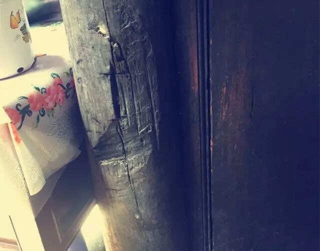 另一处是一座清代旧宅。宅主让我们观看堂屋两根柱子上,“长毛”用刀砍的痕迹。那是在威胁,快拿钱来,不然“老子劈了你”!