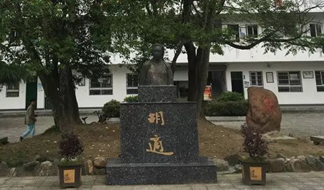 在门外马路边,就可以看到校园中心位置矗立着胡适的半身雕像,和三层教学楼左侧写有“种瓜得瓜,种豆得豆”八个大字——这是一句劝善的俗谚,也是胡适一生的信念,与学校操场边告示牌上写的胡适的语录“要怎么收获,先那么栽”意思相近,不过前者侧重因果关系的果,后者强调因果关系的因。这样两句大白话,比我们现在各级学校那些八股官腔的“校训”应该好得多。