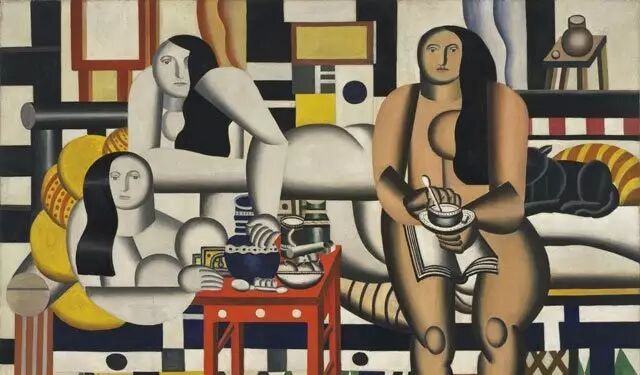 一向觉得费尔南·莱热的画很适合做成印刷品,他画得也有点像印刷品;但当我在几家博物馆里看到他的真迹,尤其是在纽约当代艺术博物馆面对堪称巨制的《三个女人》(1921-1922)时,仍然感到一种前所未有的震撼。尽管这震撼未必完全是正面的,——讲得更准确些,未必完全是在我所习惯的方向上的。
