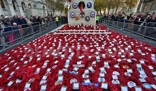 每一年这个时候,在最接近十一月十一日的那个礼拜天,整个英国的教堂和战争纪念馆,都会举办纪念活动。人们都佩戴纸制的罂粟花,以此象征法国和比利时战场上盛开的罂粟,以及倾洒在那里的热血。一战爆发的纪念活动之一,是在伦敦塔周围摆上将近一百万手工制作的陶瓷罂粟花:每一朵代表一名死于一战的英国本土及殖民地公民。一眼望去,罂粟花仿佛是从伦敦塔的围墙流泻出来,慢慢涌上墙外的地面——就像从身体涌出的鲜血。