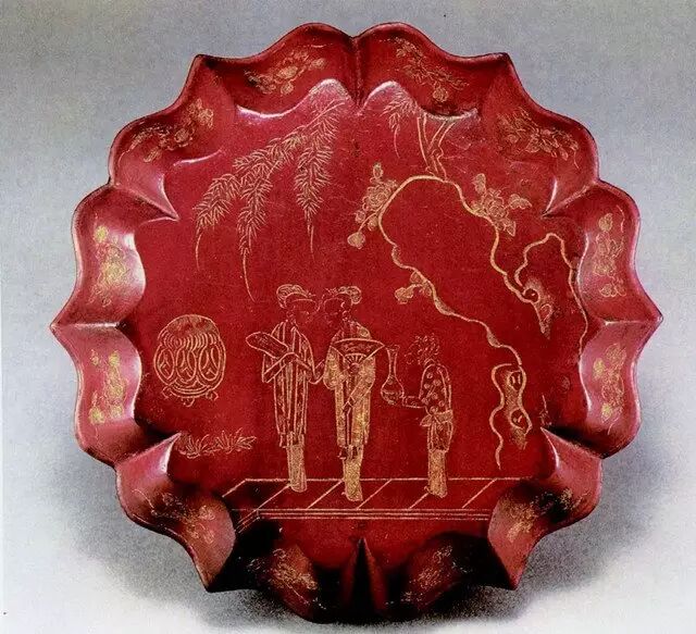 ▲ 南宋《枪金人物花卉文棱花形奁》,上有妇女持折扇场景。江苏省武进县村前乡南宋五号墓出土,常州市博物馆藏