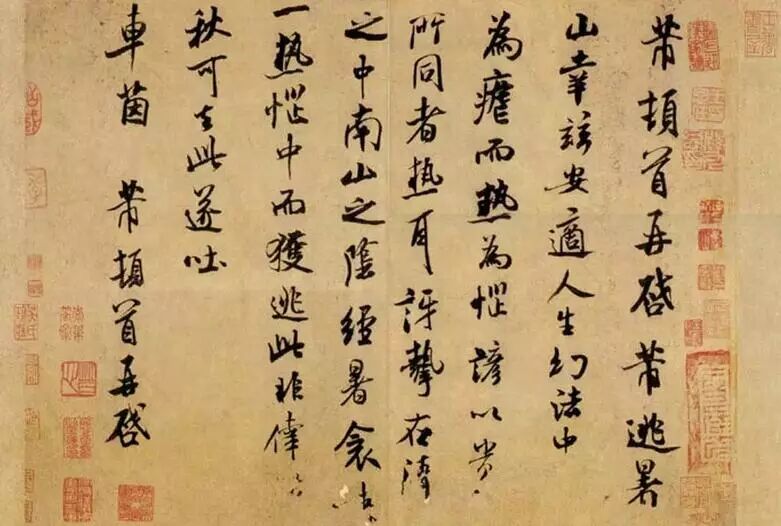 宋代的梅尧臣也喜欢跑山里避暑。他在《中伏日妙觉寺避暑》诗中写道:“高树秋声早,长廊暑气微,不须河朔饮,煮茗自忘归。”山寺林木蓊翳,环境清幽,自然使人心静生凉。再如米芾,曾当过“监中岳祠”闲职,可自由支配的时间非常多。于是在某个炎炎夏日,他干脆庙也不管了,直接带领一家老小躲进了深山,还得意洋洋地给写信给朋友炫耀呢。