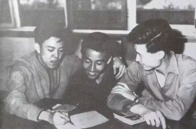 图 | 容国团与教练傅其芳、姜永宁讨论战术 ,三人都来自香港