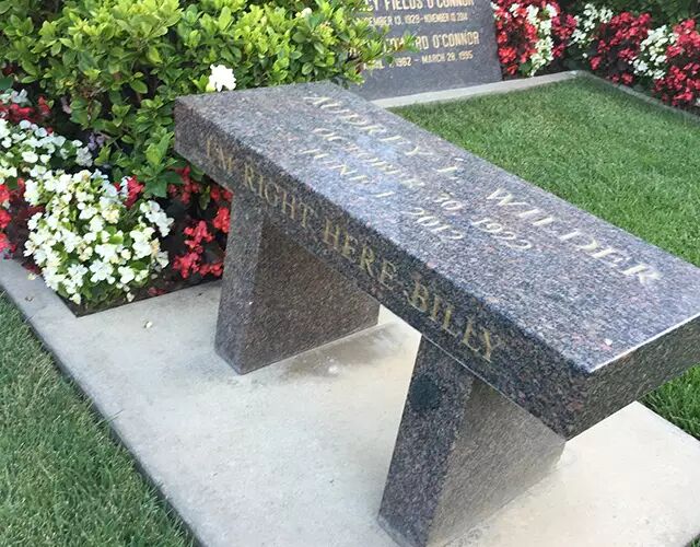 今年夏天终于得偿所愿,按照导航找过去,却并不是通常的墓园模样。Westwood市中心两座写字楼之间,抬眼看是地下停车场。旁边有条不起眼小路,有墓园的路牌指示,走到底看见墓园的铁门才算是豁然开朗,墓园旁边就是社区图书馆。一个安静得不太寻常的黄昏,在洛杉矶夏日里,我走进墓园。