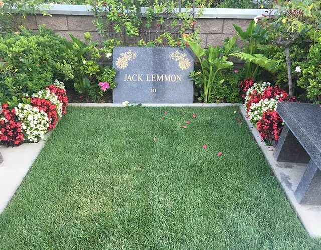 在怀尔德左侧,静卧着他一生最好的搭档:杰克·莱蒙,墓碑很低调,除了名字之外什么都没有。而他恰恰就是最被低估的影帝。史上第一位囊括戛纳威尼斯柏林和奥斯卡四项“全满贯”的影帝,作为一个自哈佛大学毕业的美国演员,能在向来挑剔的欧洲电影节里做到这一点是非常困难的,难度不比一个阿富汗人拿到跳水金牌更低。还有早逝的玛丽莲·梦露,她的墓在北面的墙穴之上,常年有粉丝会留鲜花于铭牌上。
